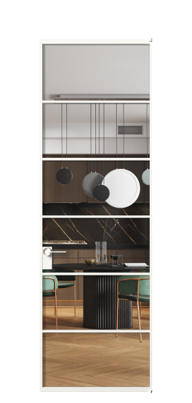 Чтобы вы могли создать своё индивидуальное решение, мы предлагаем 19 вариантов декоративного стекла. Последняя новинка в ассортименте Волховец — прозрачные и матовые стёкла голубого, жёлтого, оранжевого и розового цветов. В коллекции используется только безопасные стёкла: калёное и триплекс. Ещё одно интересное решение для интерьера — использование стекла с эффектом Stopsol, когда лицевая сторона стекла зеркальная, но при включенном освещении за стеклом — становится прозрачной.